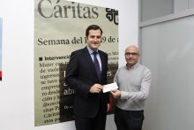 02/01/2013 09:40:43 Por noveno año consecutivo, el importe de las tradicionales tarjetas navideñas que BSH Electrodomésticos España enviaría a sus clientes, proveedores y colaboradores ha sido destinado a una asociación benéfica. En esta ocasión, los 6.000 euros se han entregado a Cáritas Diocesana de Zaragoza que la entidad benéfica destinará a su proyecto de acompañamiento domiciliario y comunitario. Jesús Egido Roldán, subdirector general del grupo BSH en España, ha entregado esta mañana el correspondiente talón a Francisco Yagüe, secretario general de Cáritas.