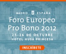 19/10/2012 08:59:44 El Foro Europeo Pro Bono, que celebrará en Madrid su sexta edición los días 25 y 26 de octubre, constatará el impulso que la actividad desinteresada de los abogados ha experimentado en el mundo del Derecho en la última década, sobretodo en Europa. Este congreso, que será inaugurado por Alberto Ruiz Gallardón, Ministro de Justicia de España, ofrecerá la oportunidad de debatir sobre el estado actual y las claves para el desarrollo del pro bono en España y en el resto del mundo en un escenario de crisis global que a todos atañe.