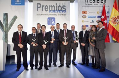 30/01/2014 08:27:23 Asepeyo distingue a ocho empresas en la II Edición de los Premios Asepeyo a las Mejores Prácticas Preventivas. Estos galardones tienen como objetivo reconocer a aquellas empresas asociadas a la Mutua que hayan destacado por sus proyectos en materia de prevención de riesgos laborales. En total se han presentado 87 trabajos, de los cuales el jurado, compuesto por la Junta Directiva de Asepeyo, ha decidido distinguir como ganadores a ocho de ellos entre 30 finalistas.