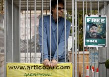 'Enjaulados' para pedir la libertad de los activistas de Greenpeace