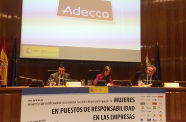 22/01/2014 09:50:45 El Grupo Adecco ha apoyado el primer Acuerdo Voluntario, promovido por el Ministerio de Sanidad, Servicios Sociales e Igualdad, para aumentar la presencia de mujeres en puestos de dirección durante los próximos cuatro años.