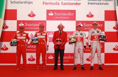 15/04/2013 09:28:37 Emilio Botín, presidente de Banco Santander, ha anunciado la cuarta edición del programa Becas Fórmula Santander de movilidad internacional en Shanghái, sede del tercer gran premio de F1 de la temporada. El acto contó con la participación de los pilotos de Scuderia Ferrari, Fernando Alonso y Felipe Massa, y de Vodafone McLaren Mercedes, Jenson Button y Sergio Pérez. También asistieron 100 estudiantes de universidades chinas.