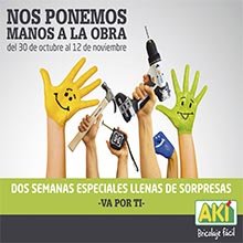 27/10/2017 08:05:00 La empresa de bricolaje AKI, perteneciente a ADEO, celebrará hasta el 12 de noviembre la segunda edición de su evento solidario “Manos a la obra”, centrado en la colaboración social. De este modo, las 51 tiendas que tiene la compañía en España se se volcarán en diversas actividades solidarias.