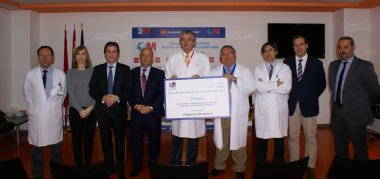 24/02/2016 07:15:22 El Centro de Estudios PONLE FRENO-AXA de Seguridad Vial hizo entrega el pasado lunes de un cheque de 14.000 euros al Hospital Universitario Puerta de Hierro-Majadahonda con motivo de la recaudación virtual conseguida en #KmsPonleFreno, una acción paralela a la celebración de la VII Carrera PONLE FRENO del pasado 28 de noviembre. Con esta cantidad, el total de fondos recaudados por la última carrera PONLE FRENO asciende a 200.000 euros, que serán destinados íntegramente al proyecto de investigación clínica de terapia celular para la discapacidad neurológica del citado hospital.