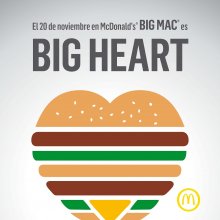 17/11/2015 07:25:54 Con motivo del Día Mundial del Niño el próximo 20 de noviembre, McDonald’s España va a celebrar ese día en todos sus restaurantes la iniciativa solidaria “Big Mac, Big Heart”. En esta jornada, todo lo que se recauda por la venta de Big Mac, ya sea en menú o individual, está destinado a la Fundación Infantil Ronald McDonald, cuya razón de ser son las Casas Ronald McDonald para alojar familias con niños que reciben tratamiento hospitalario de larga duración.