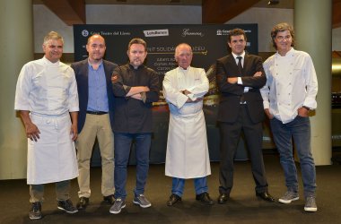 16/09/2015 09:59:10 El Casal dels Infants, en colaboración con LetsBonus y el Gran Teatre del Liceu, ha organizado una cena solidaria en la que cuatro chefs con estrella Michelin– Nando Jubany, Carles Abellan, Albert Adrià, y Carles Gaig– elaboraron un menú especial sobre el escenario del Teatre, maridado con una exquisita selección de vinos Gramona.