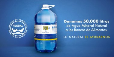 05/08/2020 08:08:29 Solán de Cabras continúa con su fuerte compromiso por contribuir activamente al bienestar integral de la sociedad, especialmente con las personas más vulnerables y que se han visto gravemente perjudicados por la crisis provocada por el COVID19. Es por ello que la icónica marca del grupo Mahou San Miguel ha donado a FESBAL (Federación Española de Bancos de Alimentos) un total de 50.000 litros de su bien más preciado: su agua mineral natural.