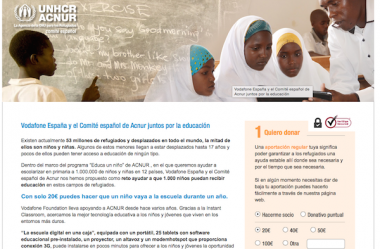 29/06/2015 07:33:54 Vodafone España y el Comité español de ACNUR se unen en el Día Mundial del Refugiado para facilitar la educación en los campos de refugiados. Dentro del programa "Educa un niño de ACNUR" (Alto Comisionado de las Naciones Unidas para los Refugiados), cuyo objetivo es ayudar a escolarizar en educación primaria a un millón de niños y niñas en 12 países, Vodafone España y el Comité español de ACNUR se han propuesto ayudar a que 1.000 niños puedan recibir educación en estos campos de refugiados.