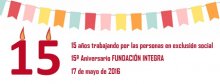 19/05/2016 09:54:11 Fundación Integra conmemora esta semana el 15º aniversario desde el nacimiento y el inicio de su actividad en 2001. Celebra 15 años de trayectoria en los que, gracias a la colaboración de más de un centenar de empresas, ha conseguido más de 8.500 puestos de trabajo para personas que se encuentran en situaciones de exclusión social o personas con discapacidad. La celebración oficial de su 15º aniversario tendrá lugar el próximo 31 de mayo con un concierto benéfico en el Auditorio Nacional de Música de Madrid.