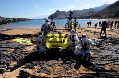 Greenpeace simula un vertido de petróleo en la playa de las Teresitas de Tenerife