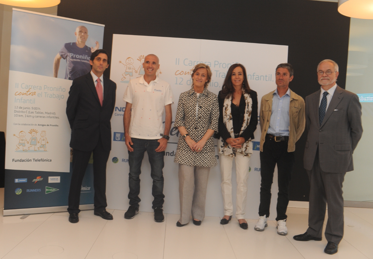 La segunda edición de la carrera Proniño en Madrid contará con dos invitados especiales, los atletas españoles Martín Fiz y Chema Martínez, que apadrinarán el evento, y que intervinieron en la rueda de prensa que tuvo lugar ayer en la Flagship Store de Telefónica. En ella participaron también José María Álvarez Pallete, presidente de Telefónica Latino América; Javier Nadal, vice presidente Ejecutivo de Fundación Telefónica; Mercedes Coghem, directora General de Deportes del Ayuntamiento de Madrid, y Reyes Justribó, directora de Marketing de Nokia Iberia.