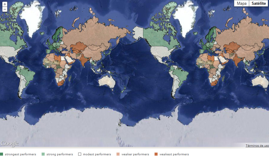 En los últimos puestos de la clasificación del EPI 2012 se encuentran Kuwait, Yemen, Sudáfrica, Kazakhstan, Uzbekistan, Turkmenistan e Irak.