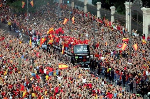 Tras ganar la Eurocopa de Ucrania y Polonia, los jugadores de la Selección Española celebraron la victoria recorriendo las calles de Madrid rodeados de miles de personas. Durante la fiesta, retransmitida por televisión, se les podía ver consumiendo alcohol, rociándoselo por encima e incluso mostrando claros síntomas de embriaguez.