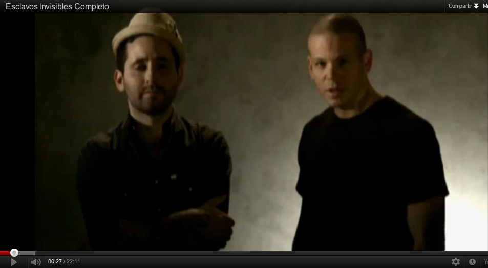 'Esclavos invisibles' es un documental producido por MTV Latinoamérica en colaboración con Unicef, dentro de la campaña MTV EXIT contra la trata y la explotación, que funciona desde 2004. Además de prestar su voz para el documental, Calle 13 también donó los derechos de una de sus canciones: Prepárame la cena, demostrando su compromiso con la causa.