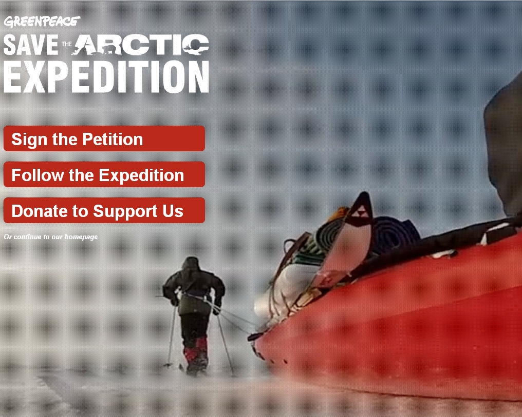 Los activistas de Greenpeace exigirán en el encuentro con el Consejo Ártico que las áreas no habitadas alrededor del Polo Norte sean declaradas patrimonio mundial. En 2007, el explorador ruso Artur Chilingarov plantó una bandera reclamando el Ártico como parte de su país. Ahora, los exploradores de Greenpeace plantarán en el mismo sitio la bandera del futuro. El símbolo ha sido diseñado por Sarah Batrisya, una chica de 13 años de Malasia, y escogido por la diseñadora Vivienne Westwood en el marco de un concurso internacional impulsado por Greenpeace. La bandera simboliza la esperanza, la unión internacional y la paz. Según la ONG ecologista, ninguna nación debe reclamar el Ártico como parte de su mar territorial o explotar las oportunidades de nuevos caladeros o bolsas de petróleo que yacen tras el deshielo provocado por el cambio climático.