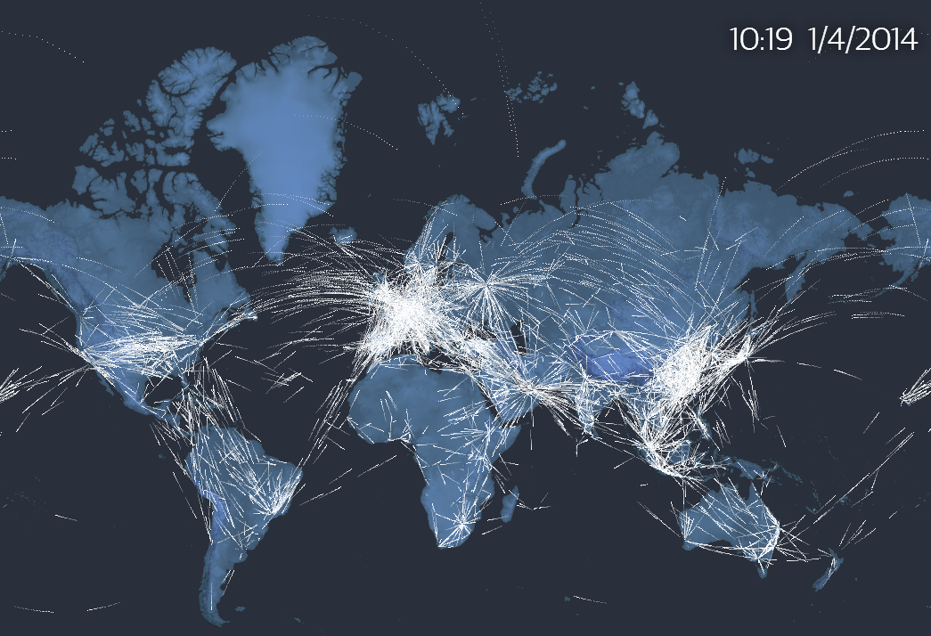 Desde que en 1914 el avión Benoist XIV recurrió 35 kilómetros en 23 minutos entre Saint Petersburg y Tampa (dos localidades de Florida, EEUU) hasta el día de hoy han transcurrido 100 años. Para conmemorar este aniversario, el rotativo inglés The Guardian ha inaugurado una página web que repasa la historia de la aviación durante todas estas décadas, e incluye un mapamundi que permite seguir todos los vuelos del mundo en tiempo real. Además estima la proyección del sector en los próximos años en materia de pasajeros, consumo de fuel y contaminación atmosférica.