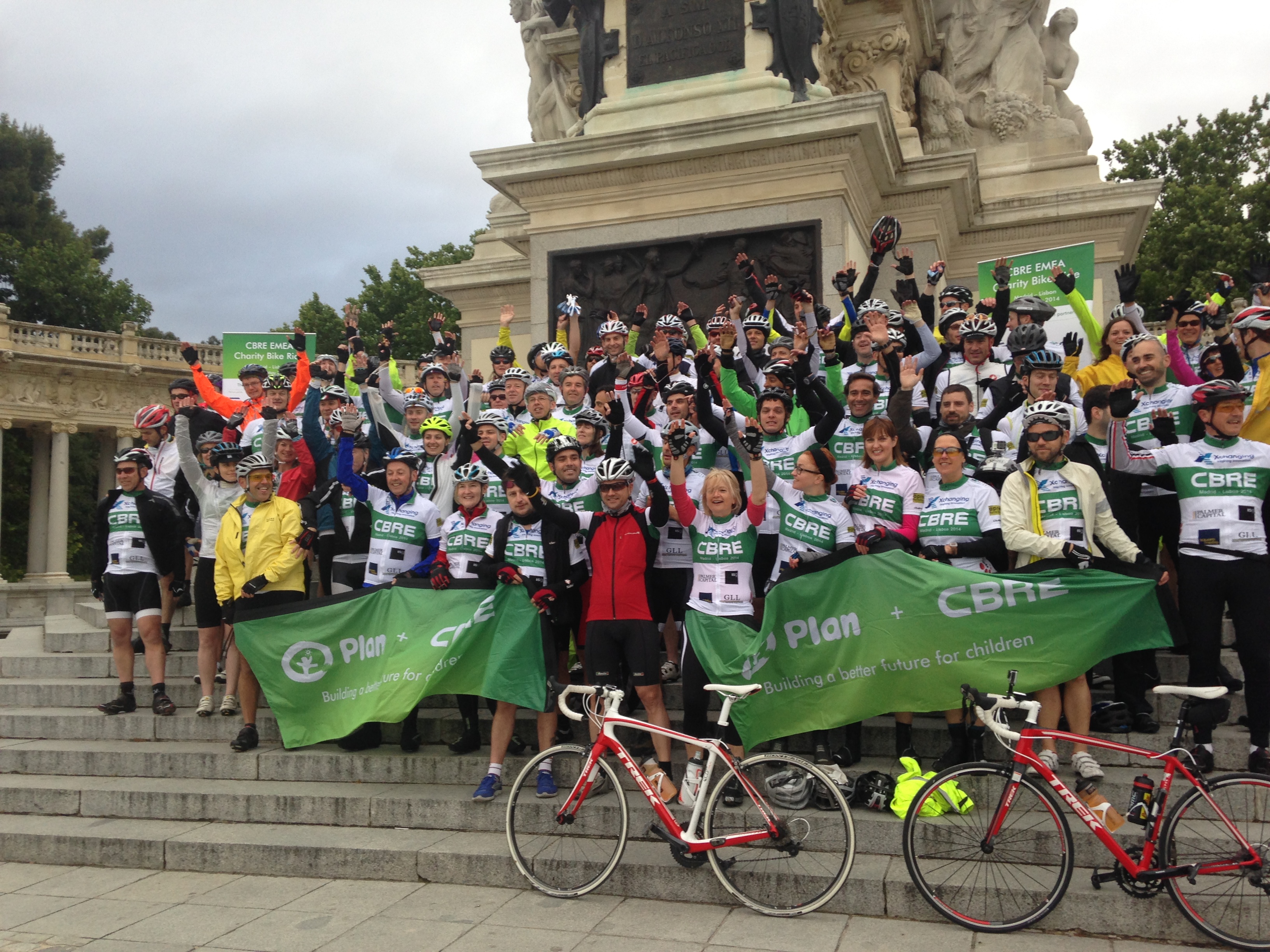 800 kilómetros en bicicleta por una buena causa, con el que se recaudarán 50.000€ para la ONG Plan International y su programa de educación dirigido a algunos de los niños más pobres del mundo en Sierra Leona. Los ciclistas que participan en la edición 2014 de la vuelta solidaria de CBRE EMEA (Europa, Oriente Medio y África) patrocinada por Xchanging Plc, que durará cinco días, salieron desde el Parque del Retiro y tienen previsto llegar a Lisboa (Portugal). En este sentido, la participación de Cbre surge del acuerdo a tres años firmado entre CBRE EMEA y Plan Internacional para el fomento de la educación infantil. Concha López, Consejera Delegada de Plan International en España destaca la importancia de este tipo de colaboración: “Nuestra asociación nos ayudará a construir un futuro mejor para más de 135.000 niños y niñas (particularmente niñas) de Sierra Leona. Millones de niñas en el mundo sufren algún tipo de discriminación —se les niega el acceso a la educación y no gozan de las mismas posibilidades y oportunidades que los niños— y, por ello, trabajamos tenazmente para enmendar tal injusticia.”