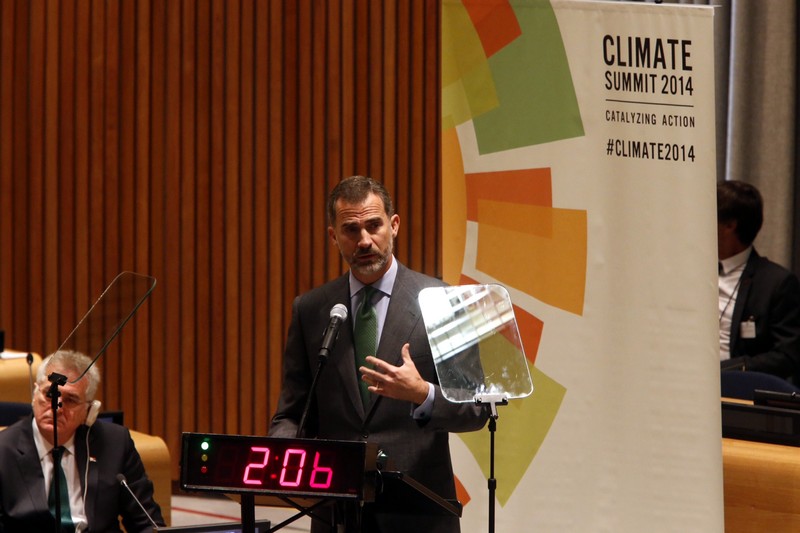"Que nadie se llame a engaño. Ninguno de los países aquí representados puede esperar. Detrás del ascenso de unos pocos grados de temperatura, están en juego vidas humanas y la continuidad misma de nuestras sociedades. No podemos esperar, pero sí hay razones para la esperanza. Compartimos un consenso básico sobre el peligro que nos acecha. En los últimos años hemos avanzado con medidas que, aun siendo insuficientes, apuntan en la buena dirección. Ahora, toca acelerar el paso", afirmó Don Felipe, que recordó que "en menos de un año, en la Cumbre del Clima de París 2015, tendremos que tomar una decisión clave para el futuro del planeta: la adopción de un nuevo acuerdo global y vinculante que nos permita combatir el cambio climático de manera conjunta y coordinada. Seamos ambiciosos, seamos inteligentes… seamos sensibles y solidarios".