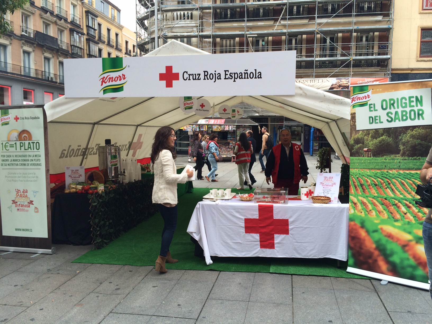 La marca Knorr situó su mesa petitoria en la madrileña Plaza del Callao donde animaba a los viandantes a donar a cambio de degustar una de sus cremas de verduras. Asimismo, Knorr se comprometió con Cruz Roja a dar 1 plato de Crema de Verdura por cada € recaudado en su mesa. Tras el recuento, Knorr donará 1.000 platos de este alimento para los comedores escolares de Cruz Roja.
