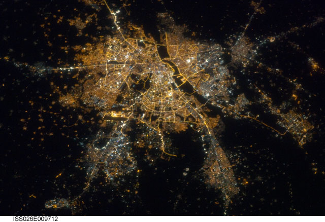 Las imágenes de satélite nos ayudan a medir y comparar como se iluminan grandes áreas. Con los colores de las imágenes tomadas por los astronautas, podemos estimar la eficiencia de la iluminación en muchas ciudades del planeta.