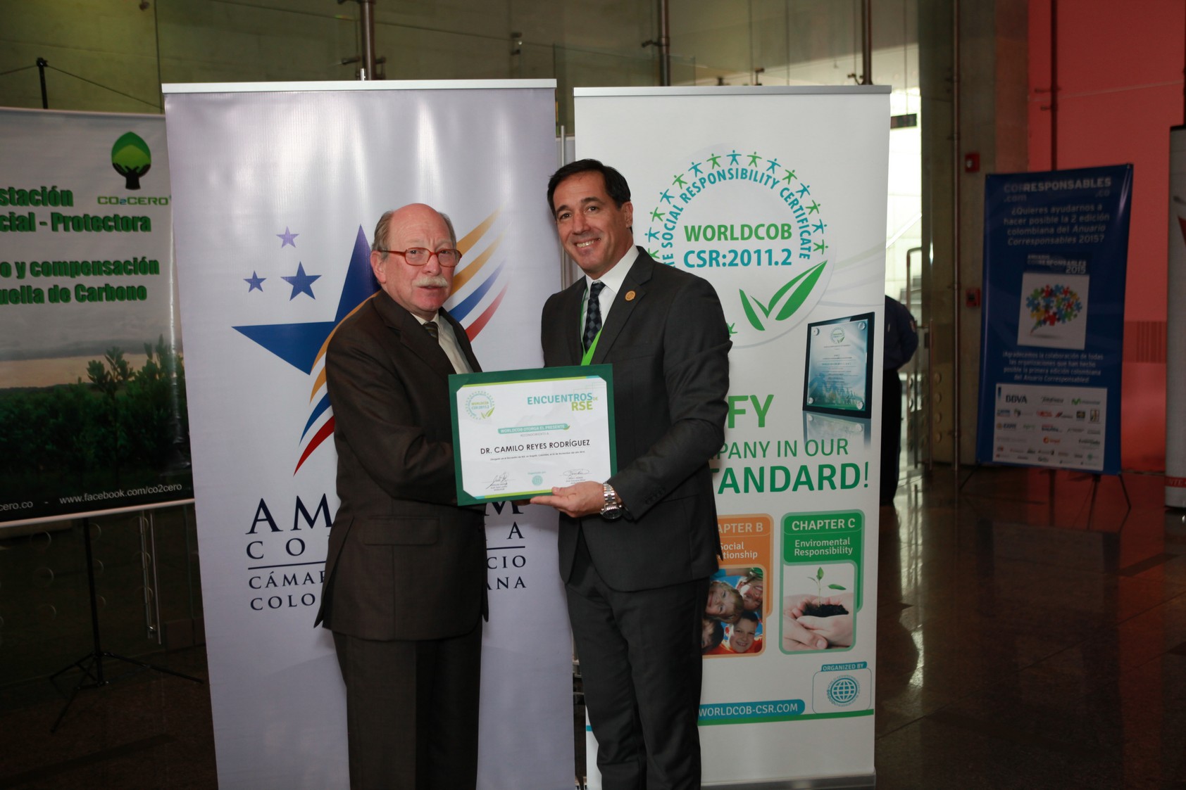 Varias empresas colombianas fueron certificadas con la norma WORLDCOB-CSR:2011.2. por promover buenas prácticas de Cultura Empresarial Socialmente Responsable, en este exitoso “Encuentro de Responsabilidad Social Empresarial”.