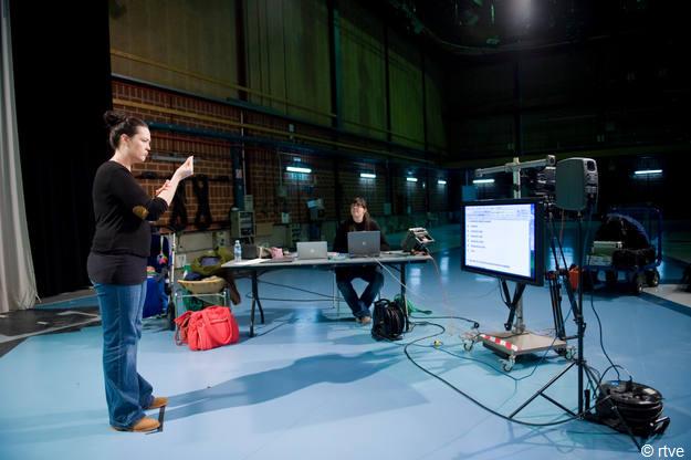 El líder del proyecto HBB4ALL, la Universidad Autónoma de Barcelona, ha solicitado la colaboración de RTVE, que presta las instalaciones de Sant Cugat para realizar unas grabaciones de lengua de signos. Estás imágenes serán empleadas en fase experimental para trabajar sobre las características formales de inserción de lengua de signos en televisión.
