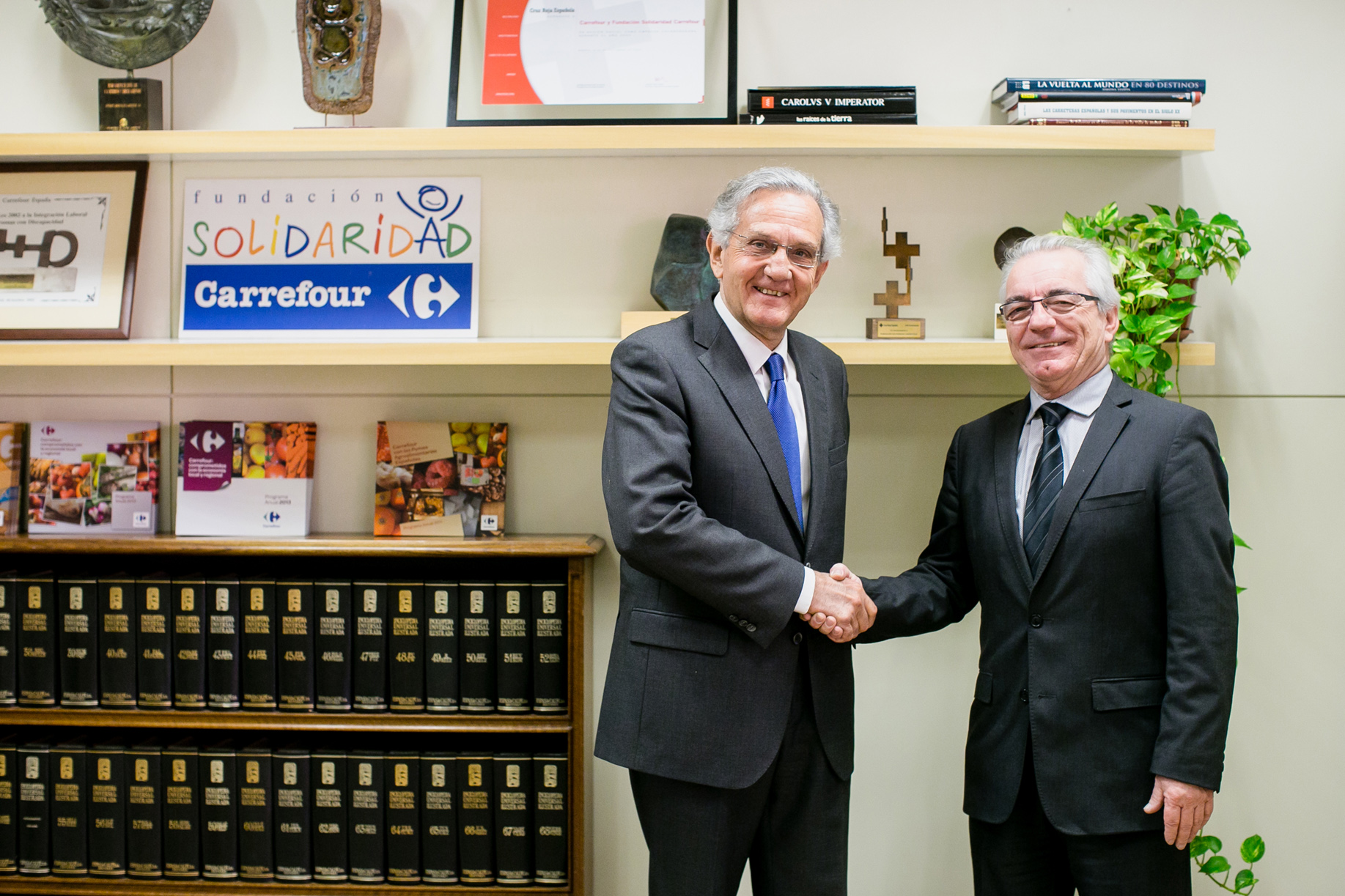 El presidente de la Fundación Solidaridad Carrefour, Rafael Arias-Salgado, y el presidente de Confederación ASPACE, Jaume Marí, han sido los encargados de sellar este compromiso que consolida la relación que Carrefour, a través de su Fundación, mantiene con las asociaciones ASPACE de parálisis cerebral en España desde hace 14 años.