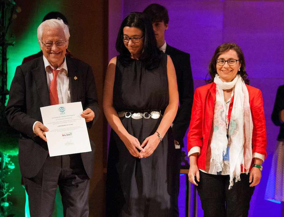 El presidente de Mensajeros de la Paz, Padre Ángel, recibió la donación en el marco del 63º Congreso Anual de la Asociación Española de Pediatría que se celebró del 11 al 13 de junio de 2015 en Bilbao.