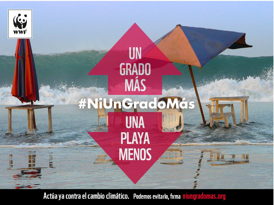 Con la campaña #NiUnGradoMás, WWF analiza estos impactos y ofrece soluciones para evitar los devastadores efectos del cambio climático. WWF anima a los ciudadanos a firmar la petición online para poner freno al cambio climático y pedir al gobierno que defienda y aplique un modelo energético 100% renovable.