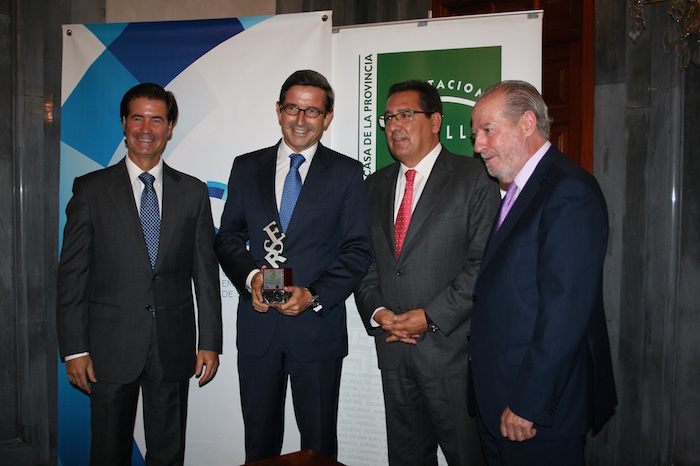 Jorge Paradela, director de Relaciones Corporativas de Heineken España, ha recogido el premio de la mano del presidente de la Diputación Provincial de Sevilla, Fernando Rodríguez Villalobos, del presidente de la Confederación de Empresarios de Sevilla, Miguel Rus Palacios, y del presidente de la Fundación Cajasol, Antonio Pulido Gutiérrez.