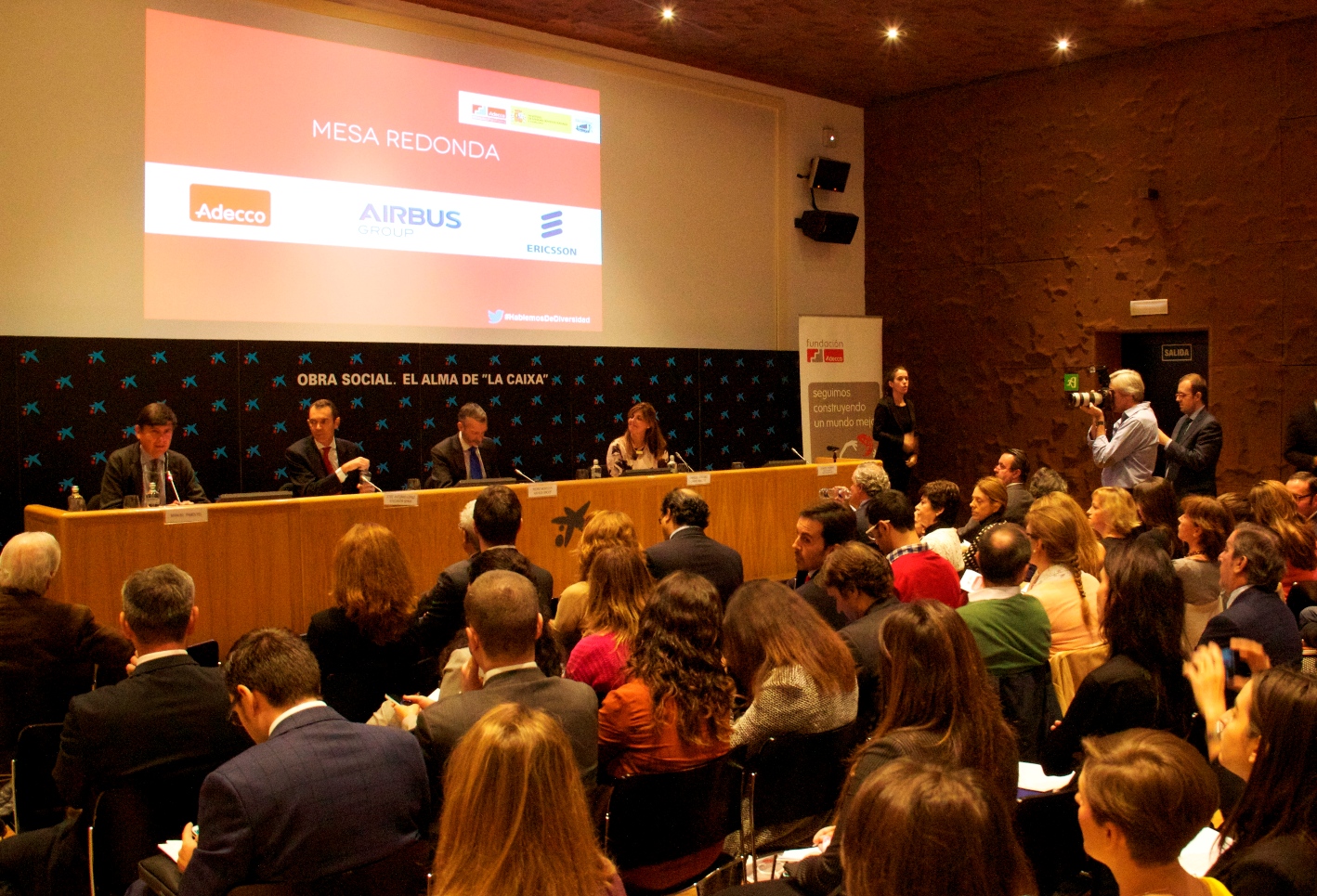 A continuación, se ha abierto un debate, moderado por Manuel Pimentel, ex ministro de Empleo, en el que han participado Pedro Montoya, General Secretary Airbus Group Spain, José Antonio López Muñoz, CEO de Ericsson Spain y Encarna Maroño, directora de RRHH de Grupo Adecco. En el coloquio se han planteado cuáles son los principales retos de las empresas y de la sociedad de cara a la integración laboral de las personas con discapacidad, o si estamos ante un buen marco legal de referencia. Los participantes han coincidido en la necesidad de una legislación que regule unos requisitos mínimos de integración laboral para personas con discapacidad, pero apelan a un marco de homogeneización europeo. También han coincidido en mejorar las políticas formativas de las personas con discapacidad, destacando especialmente la formación en idiomas o en estudios técnicos. En cuanto a la contratación, apuestan por que sea directa pero complementada con los Centros Especiales de Empleo.