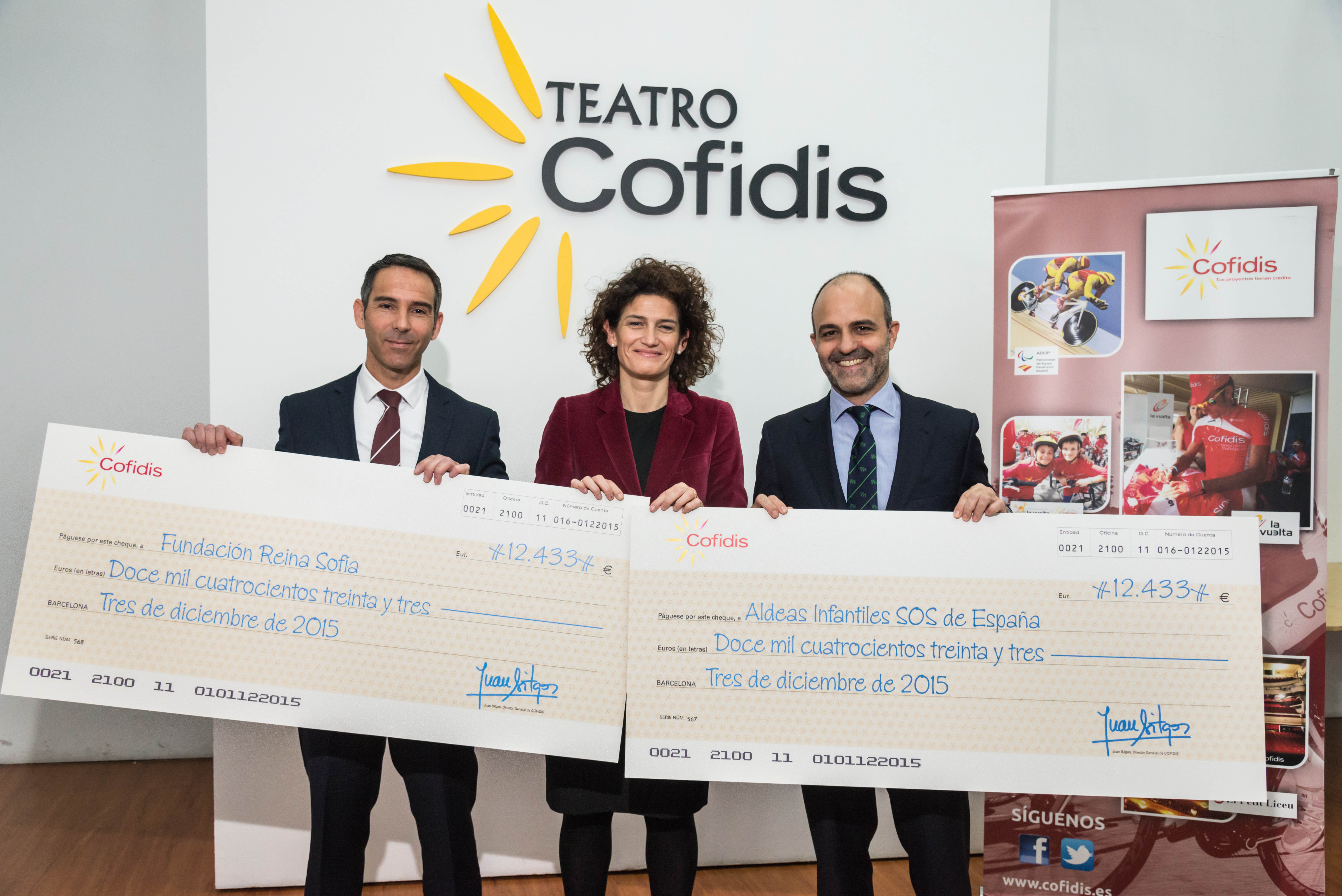 El acto de entrega del cheque, celebrado en el Teatro Cofidis Alcázar de Madrid, contó con la asistencia de Carolina de la Calzada, directora de Marketing, Marca y Desarrollo de Cofidis España; José Ramón Jiménez, director nacional de Captación de Recursos de Aldeas Infantiles SOS de España; y Benito Lojo, director de proyectos de la Fundación Reina Sofía. Las entidades destinarán el importe recibido a proyectos vinculados con la promoción de la actividad deportiva y la transmisión de valores.