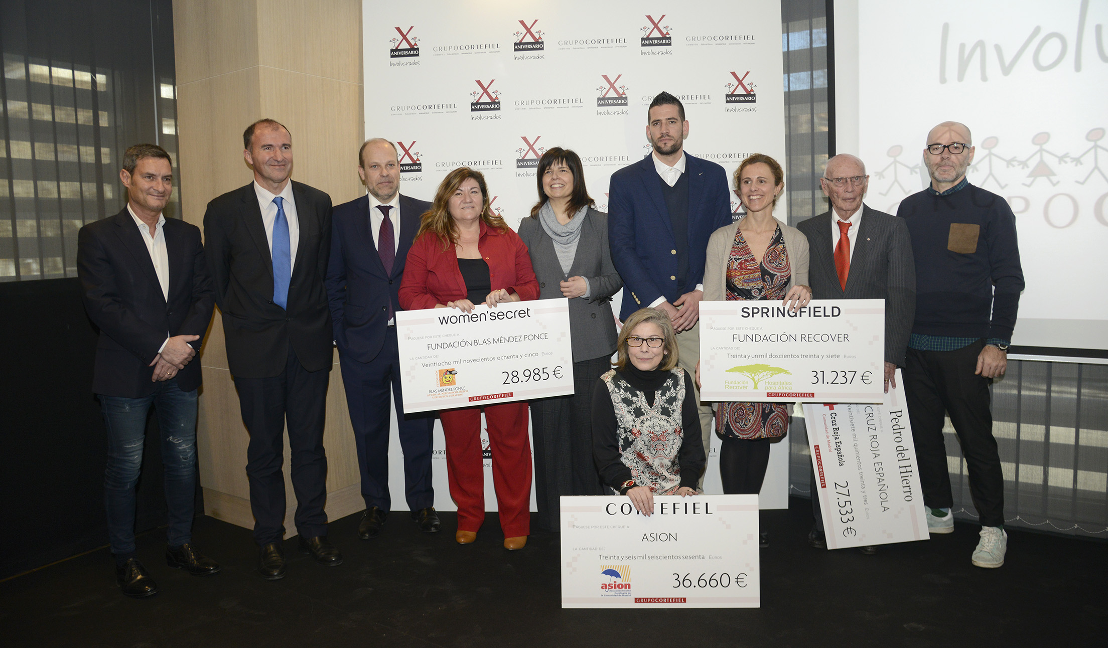 Una vez más, han sido cuatro las entidades seleccionadas por las marcas del grupo. Todos ellos recibieron sus donaciones de la mano de Kiko Casilla y del Grupo Cortefiel. De este modo, Cortefiel ha destinado los 36.660 euros de su recaudación a la Fundación Asión para la financiación del proyecto “Atención domiciliaria a niños y adolescentes con cáncer en fase terminal y apoyo a la familia en duelo”. Women'Secret ha entregado de 28.985 euros a la Fundación Blas Méndez Ponce, que los destinará al “Programa de Actividades para niños y adolescentes con cáncer y/ o enfermedades de difícil curación”. Springfield ha empleado los 31.237 euros recaudados con sus ventas en sus rastrillos solidarios a Fundación Recover para la financiación de la iniciativa “Sida vs Vida en Camerún”. Y finalmente, Pedro del Hierro ha donado 27.533 euros a Cruz Roja para la financiación del proyecto “Recurso convivencial para mujeres con responsabilidades familiares no compartidas”.