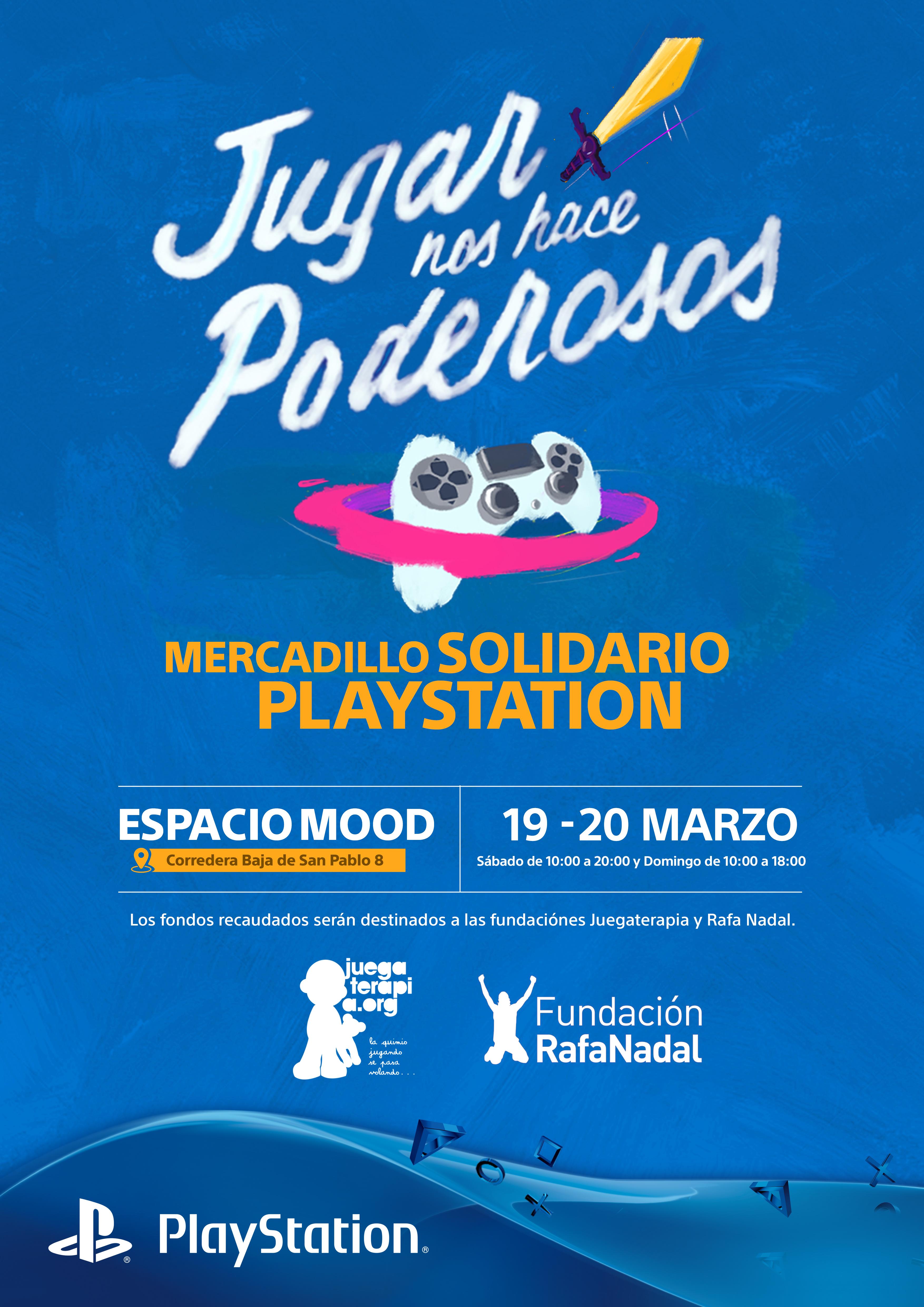 Todos los beneficios conseguidos en el Mercadillo solidario PlayStation’ se destinarán a la Fundación Rafa Nadal y a Juegaterapia, una Fundación sin ánimo de lucro cuyo trabajo está orientado a que los niños enfermos de cáncer pasen la mayor parte de su tratamiento de la mejor manera posible: jugando. Por su parte, la Fundación Rafa Nadal ofrece programas de educación y deporte para niños y jóvenes desfavorecidos. PlayStation colabora estrechamente desde 2014 en Rafa Nadal Tour by MAPFRE, un circuito de tenis de categorías SUB12 y SUB14, masculinas y femeninas, que tiene lugar anualmente en diversas ciudades españolas.