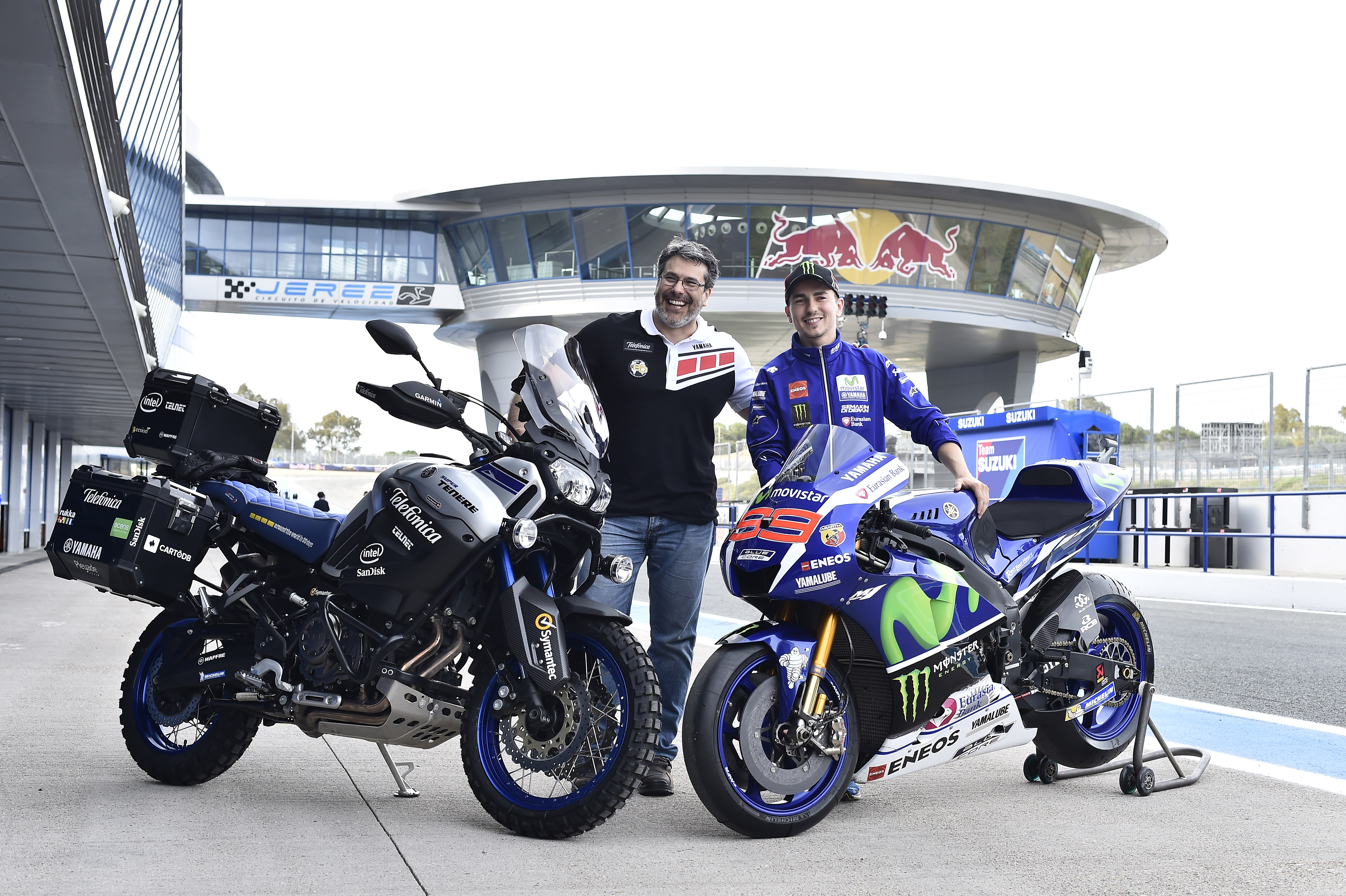 Telefónica y Yamaha han presentado en Jerez la Globalrider, la vuelta al mundo en 80 días en solitario en la primera moto “conectada” de la historia, una Yamaha dotada de las últimas tecnologías de Telefónica en Internet of Things y M2M. El circuito de la ciudad gaditana, donde este fin de semana se celebra el Gran Premio de MotoGP™, ha sido el entorno elegido para la presentación de esta aventura, que ha recibido el apoyo del equipo Movistar Yamaha MotoGP.