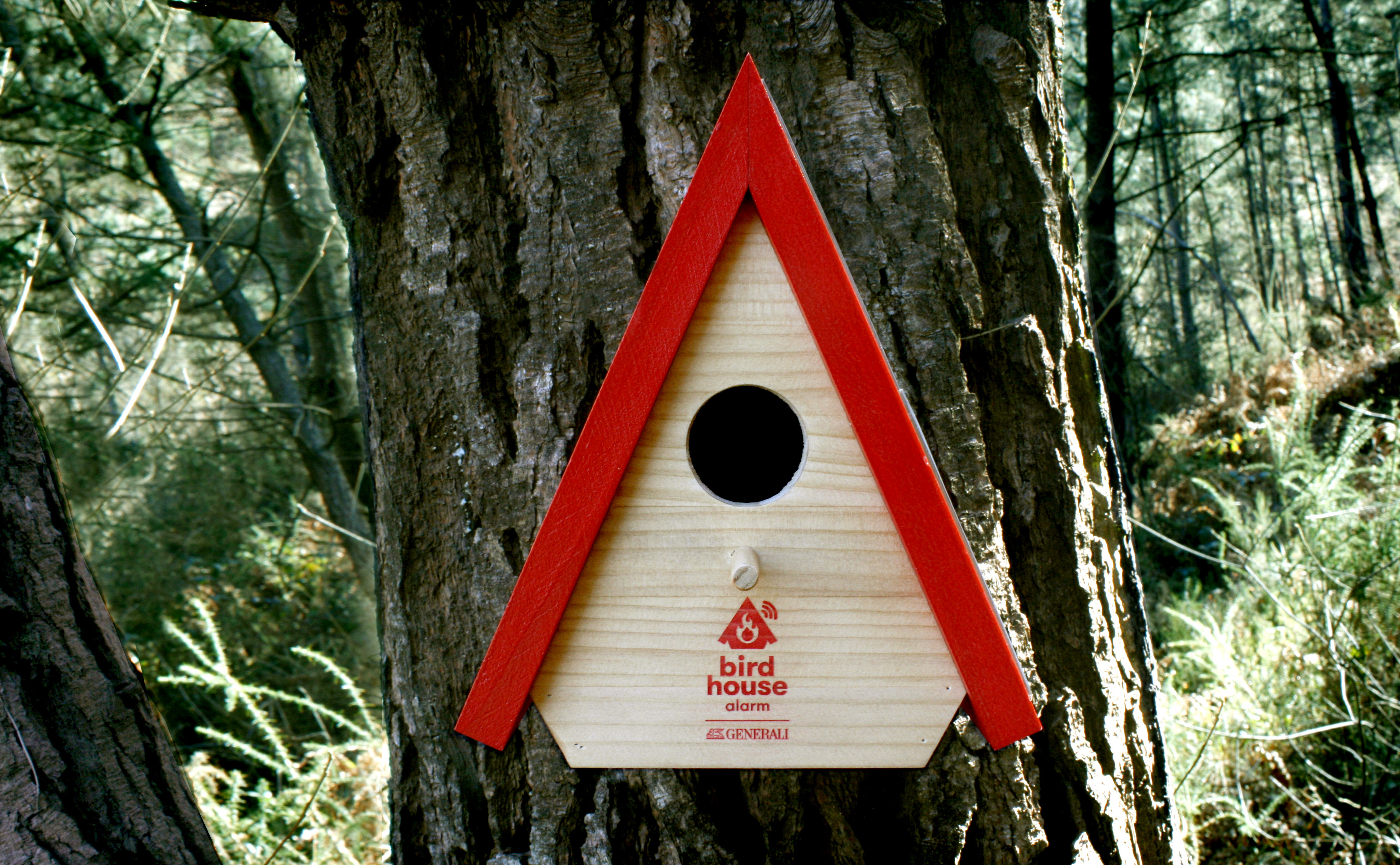 La iniciativa Generali Bird House Alarm consiste en la instalación de unos dispositivos con aspecto de caseta de pájaro, fabricados en madera y con una apariencia no intrusiva, que se alimentan de energía solar y alojan en su interior un sensor de humo y una tarjeta telefónica. Cuando el sistema detecta un posible incendio en un radio de 20 metros, avisa mediante SMS (mensaje geolocalizado enviado por 3G) al departamento forestal de bomberos, que puede actuar en un tiempo de reacción máximo de 30 minutos. Además, se mimetizan con el medio natural y proporcionan a las aves un lugar donde construir sus nidos.