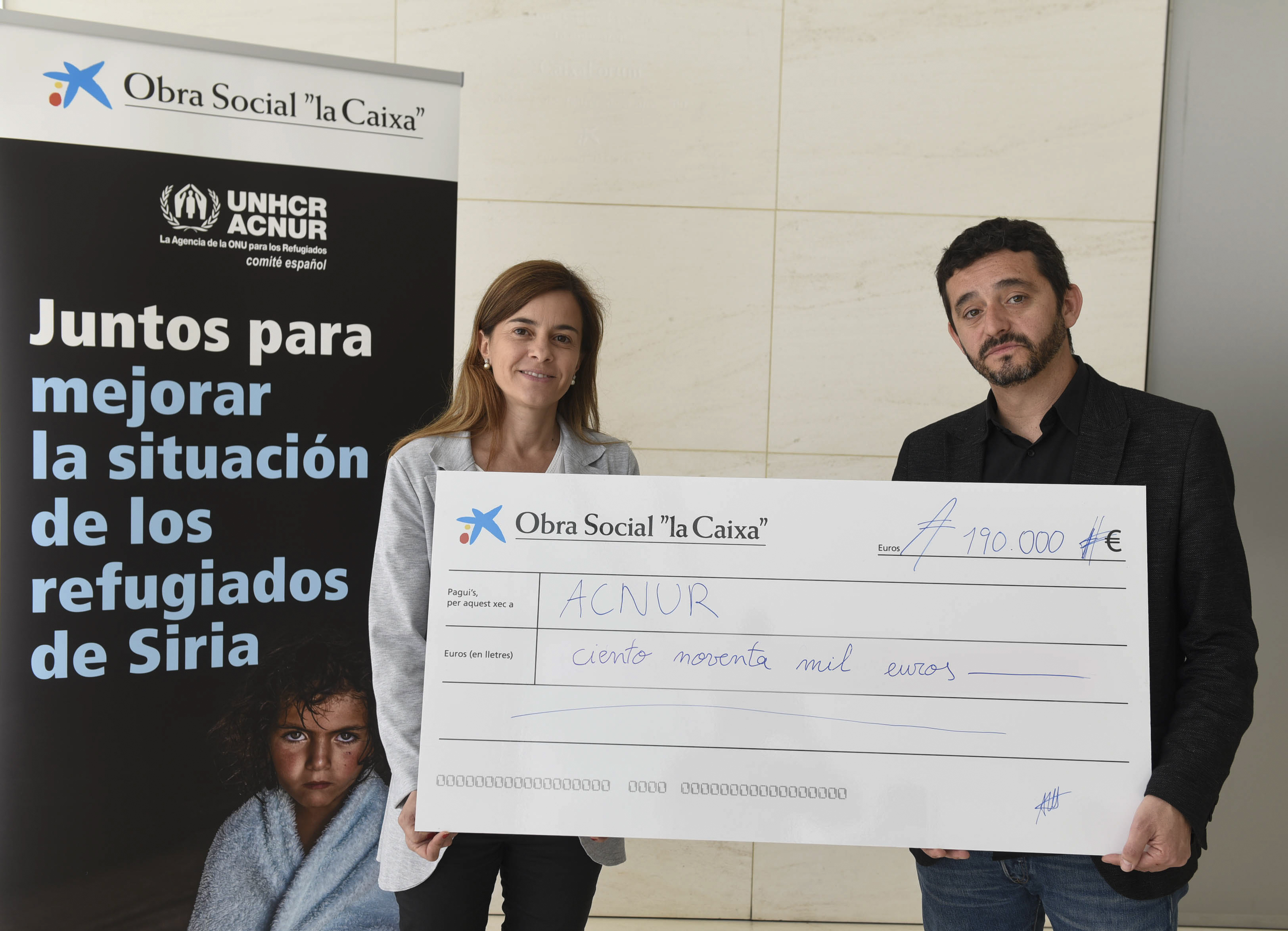 El viernes se celebró el acto de cierre de la campaña y de entrega de las aportaciones a ACNUR (Alto Comisionado de las Naciones Unidas para los Refugiados), presidido por la directora de Programas Internacionales de la Obra Social ”la Caixa”, Ariadna Bardolet, y el director del Comité Catalán de ACNUR, Joan Reventós.