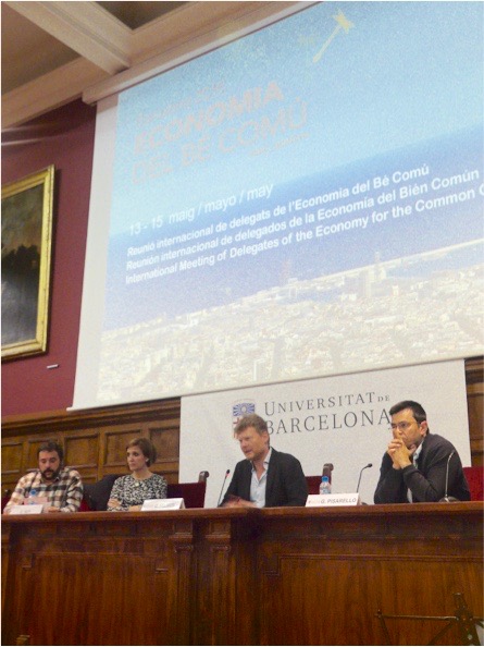 Felber declaró además que "es un paso de gigante el tener sentados en una misma mesa al gobierno de la Generalitat de Catalunya, al Ayuntamiento de Barcelona y a la Universidad de Barcelona compartiendo los valores de la Economía del Bien Común".