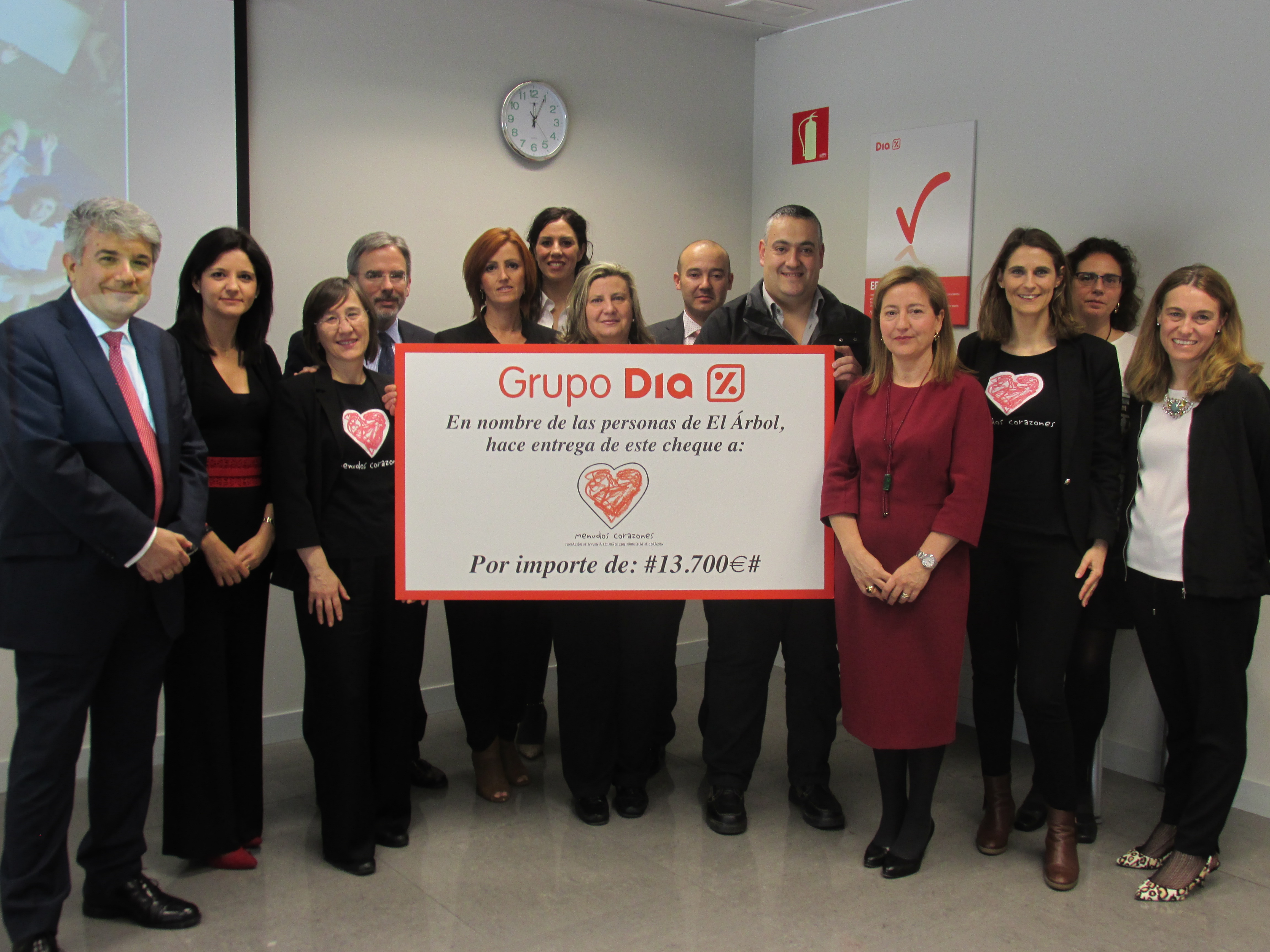 Empleados de Grupo DIA han entregado a la Fundación Menudos Corazones 13.700 euros para colaborar en las labores solidarias de esta entidad, dedicada a ayudar a niños con cardiopatías y a sus familias.
