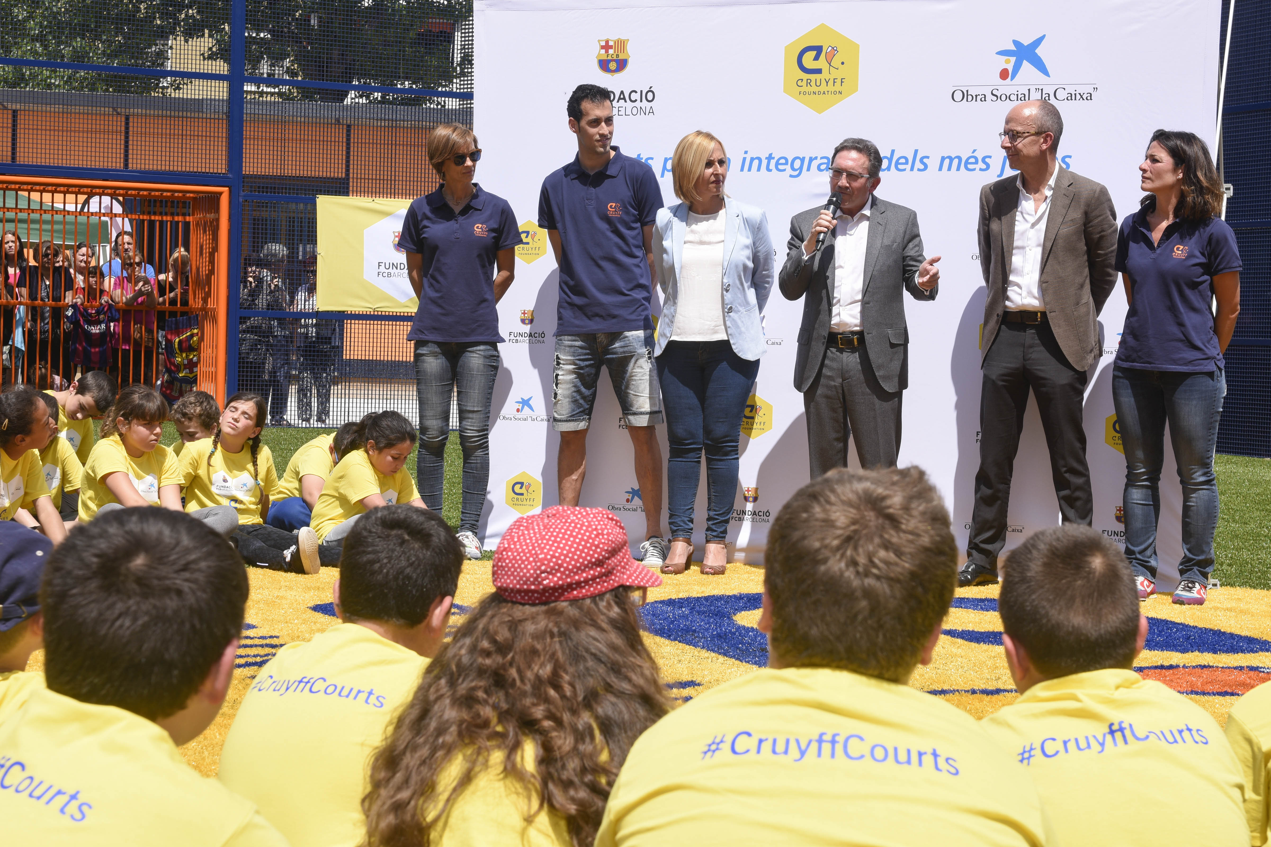 "Todos jugamos con un único objetivo: el compromiso social y la voluntad de dar oportunidades. Hoy hemos ganado. Nuestro primer triunfo es poner en marcha el Cruyff Court Sergio Busquets. Las tres instituciones formamos una alianza imparable y realizaremos la máxima de Johan: hacer posibles los sueños. Hacer posible la construcción de los 15 Cruyff Courts que acordamos», explicó el director general de la Fundación Bancaria "la Caixa", Jaume Giró.