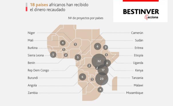 Estas acciones se han desarrollado en 18 países africanos donde destaca la inversión de 10.605 euros destinada a la investigación y desarrollo dermatológico para personas albinas y por el que se beneficiaron 2.000 personas de Moshi (Tanzania); los proyectos llevados a cabo en Yumbe y Butare (ambos en Uganda) donde se instaló paneles solares en la escuela secundaria “Inmaculate Heart Senior Secondary School” (que contó con una inversión inicial de 5.000 euros que mejoró la vida de 120 alumnos) y se construyó un Hospital al cual también se dotó de material sanitario y quirúrgico que supuso un desembolso de 163.263 euros, respectivamente.