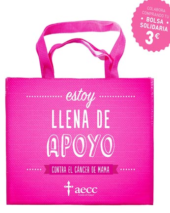Las bolsas, con el lema ‘Estoy llena de apoyo contra el cáncer de mama’ están a la venta, por un precio de 3 euros, y hasta fin de existencias, en una selección de 1.000 tiendas de Grupo DIA de todas las provincias españolas.