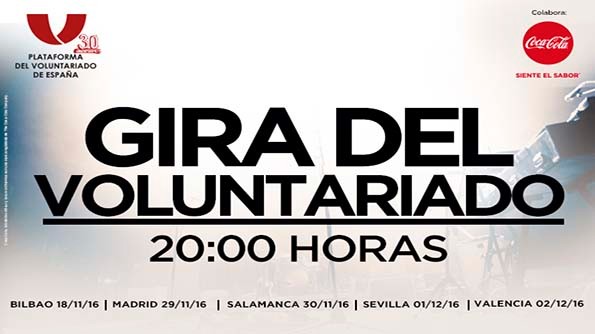 Durante el mes de diciembre la Gira del Voluntariado pasará por las ciudades de Sevilla y Valencia los días 1 y 2 de diciembre, respectivamente. Las entradas a este evento se pueden adquirir a través de Ticketea
