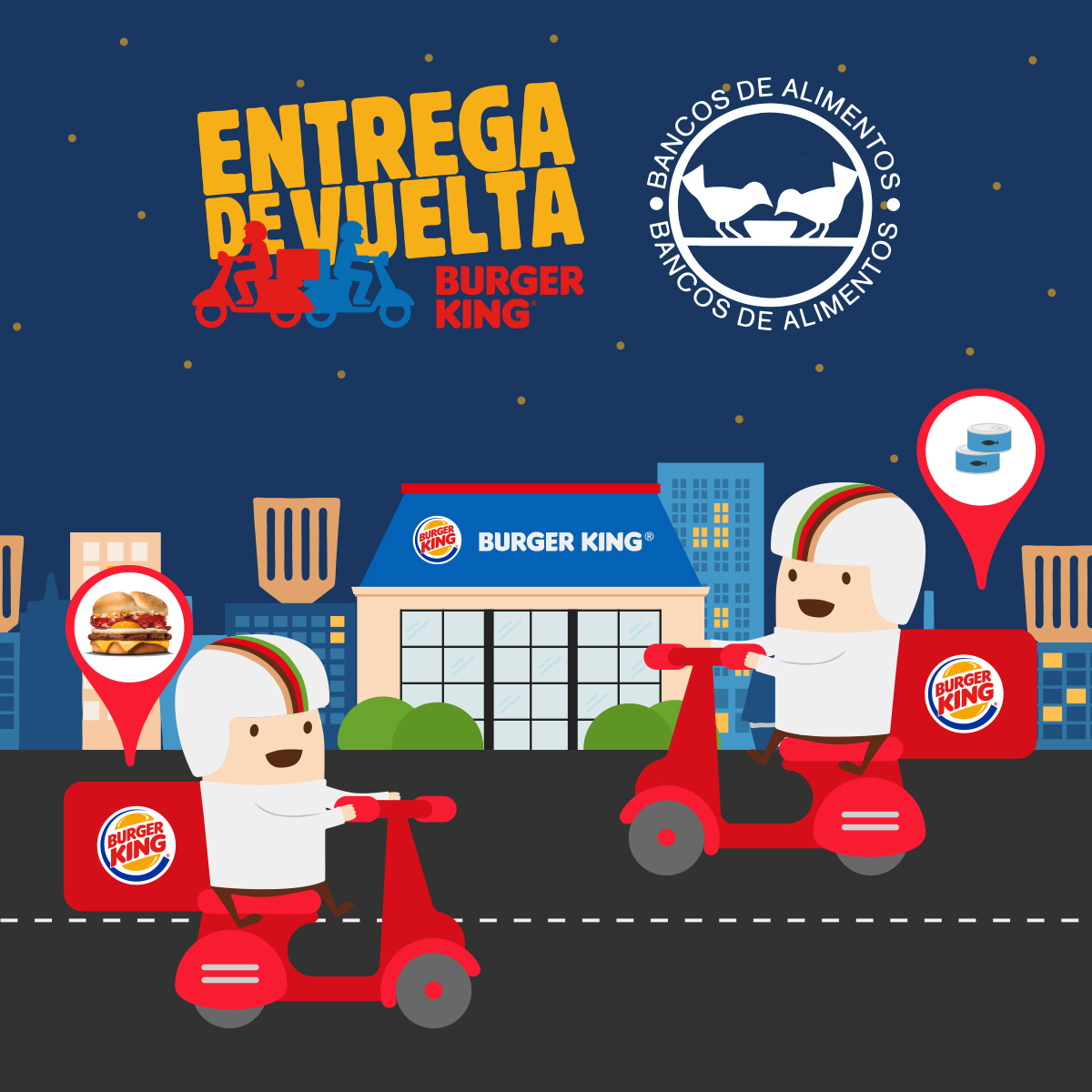 Y es que Burguer King detectó que sus repartidores volvían a los restaurantes con la moto vacía y que podían aprovechar esos viajes para tener un impacto positivo en la sociedad española. Después de meses estudiando diversas posibilidades para sacar partido a ese recorrido, la compañía ha encontrado en la Federación Española de Bancos de Alimentos una alternativa perfecta.