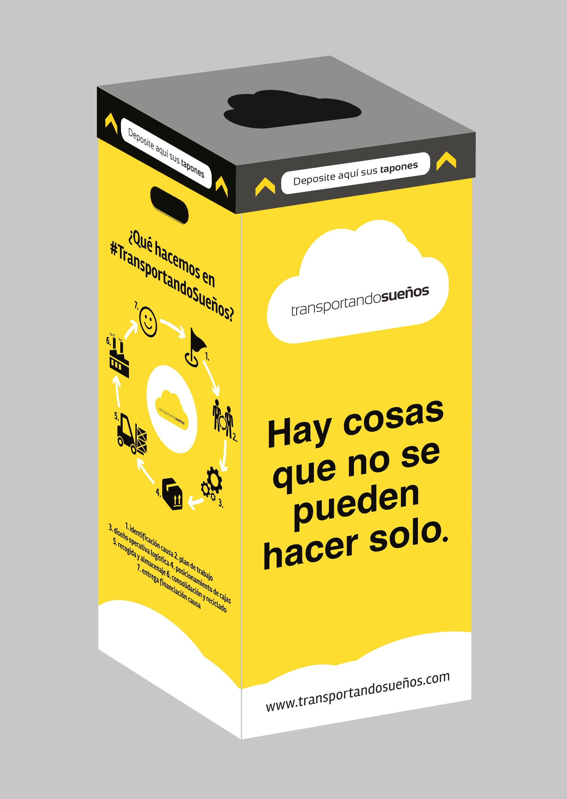 Transportando Sueños ha sido creada para promover la recogida de tapones de plástico, que en principio, están destinados a convertirse en basura, cumpliendo con dos objetivos: el mantenimiento y la conservación del medio ambiente y la recaudación de fondos que, en su mayoría, están dirigidos a proyectos de investigación científica.