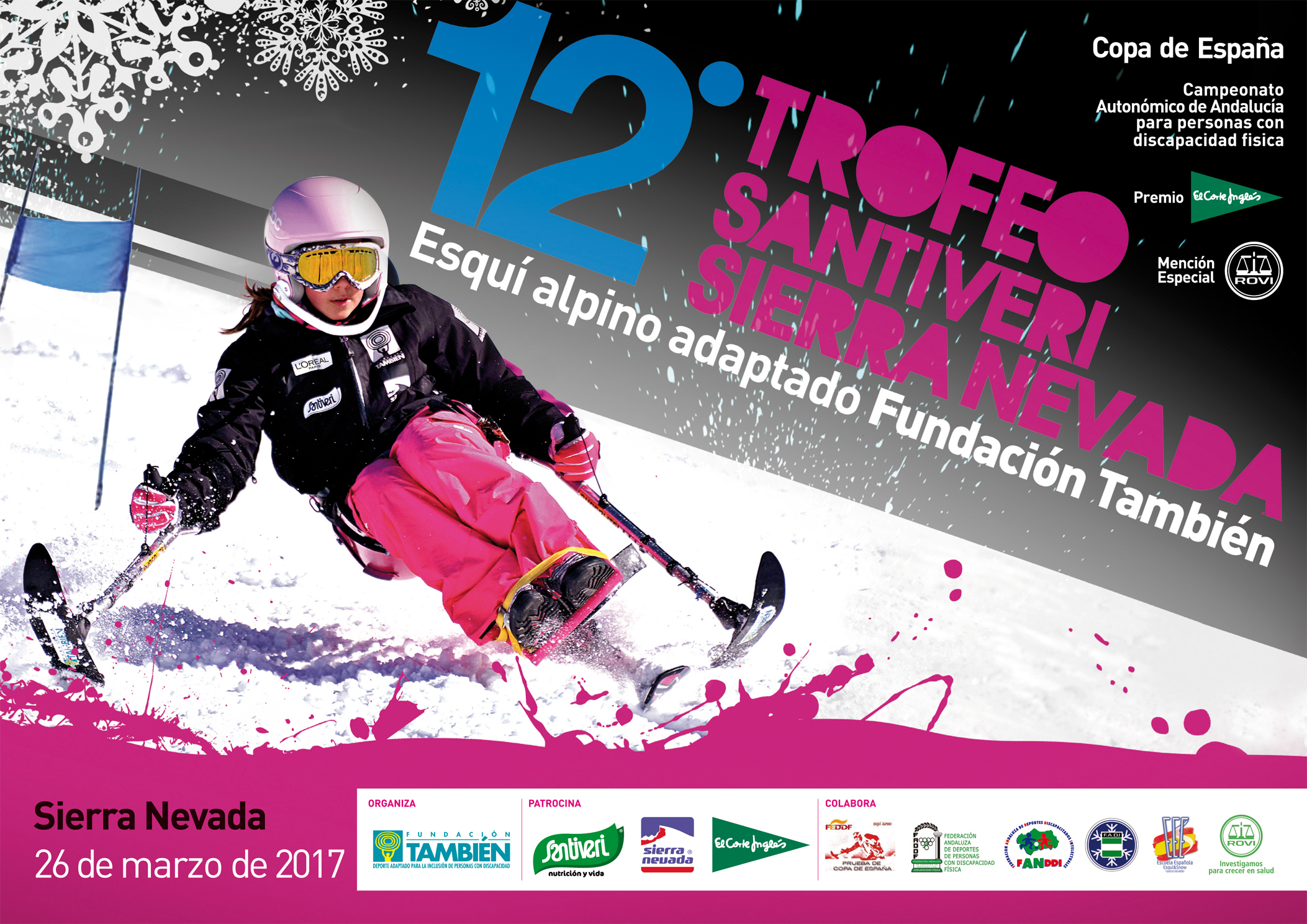 Todavía con la resaca de los Mundiales de Freestyleski y Snowboard, la accesible estación de Sierra Nevada se prepara para la celebración, este domingo 26, del 12º Trofeo Santiveri Sierra Nevada, una competición imprescindible dentro del circuito blanco adaptado y puesta en marcha en 2006 por la Fundación También. Una prueba que este año congregará a casi medio centenar de personas con discapacidad y que en esta edición es Copa de España y Campeonato de Andalucía.