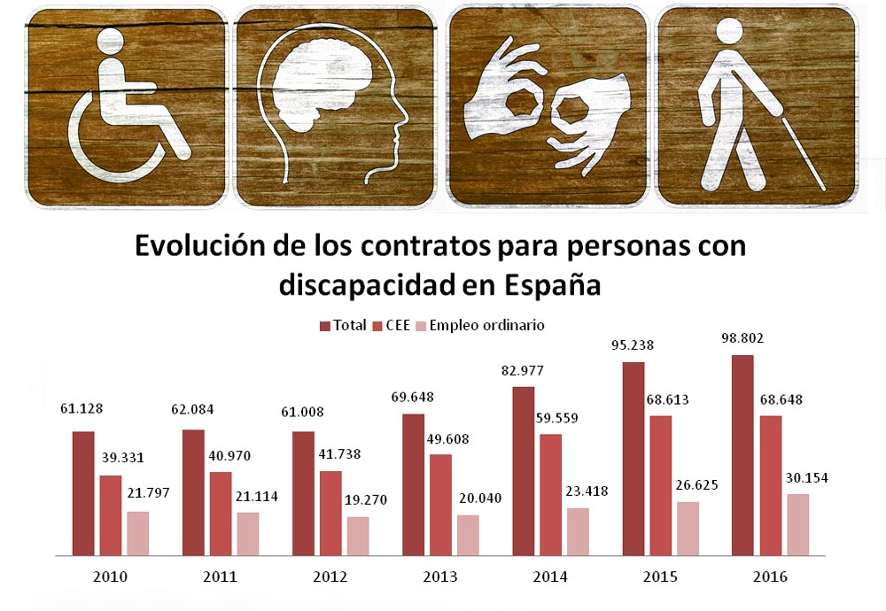 Fundación Adecco ha emitido un comunicado donde, pese a reconocer las mejoras en materia de contratación de personas con discapacidad, que según datos del Servicio Público de Empleo Estatal (SEPE) ha aumentado un 3,7%, también destaca las diferencias que existen en su naturaleza. De los 98.802 contratos que firmaron el año pasado, solo 30.154 (30,5%) se produjeron en la empresa ordinaria, el entorno habitual de trabajo, donde el trabajador con discapacidad desempeña las mismas funciones que cualquier otro empleado, aunque en ciertos casos será necesario ajustar ciertas tareas a las necesidades del trabajador. El resto se produjeron en el ámbito del empleo protegido. Y ¿cuáles son esos ámbitos? Según la Fundación dos: