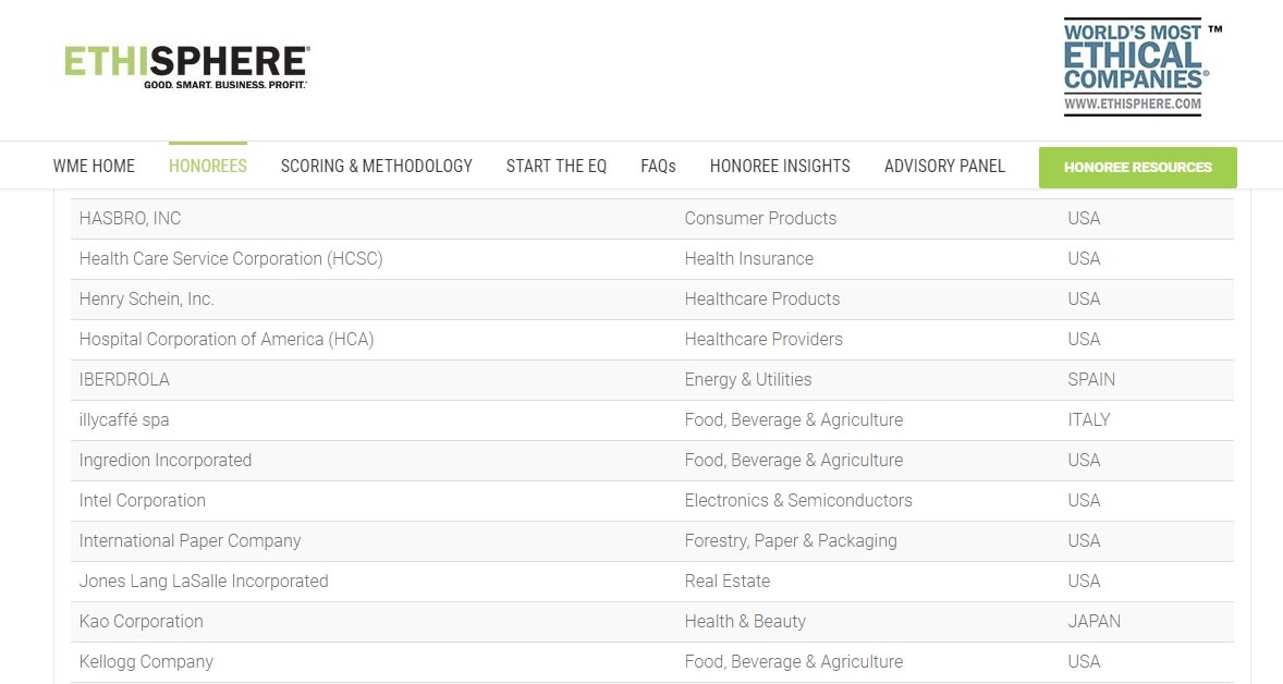 Con la publicación de este índice, el Instituto Ethisphere reconoce desde el año 2007 a aquellas compañías que ejercen su papel en la sociedad para motivar un cambio positivo en la comunidad empresarial mundial.