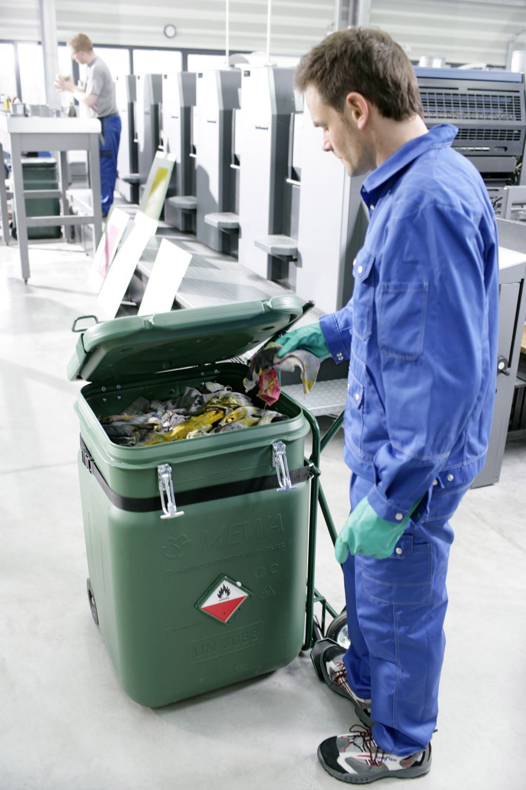 El proveedor de alquiler textil, la empresa alemana MEWA, una de las líderes a nivel europeo, ofrece en esta área soluciones a sus clientes. “En España se nos conoce sobre todo por los paños de limpieza, que ofrecemos en un servicio integral de alquiler, recogida, reposición y lavado. Estos paños se almacenan en los contenedores de seguridad de MEWA SaCon® que pueden ubicarse directamente en el lugar donde trabaja el operario, puesto que cumplen con todas las normas contra incendios y de seguridad", explica Karl-Stephan Schneider, Director General de MEWA España.