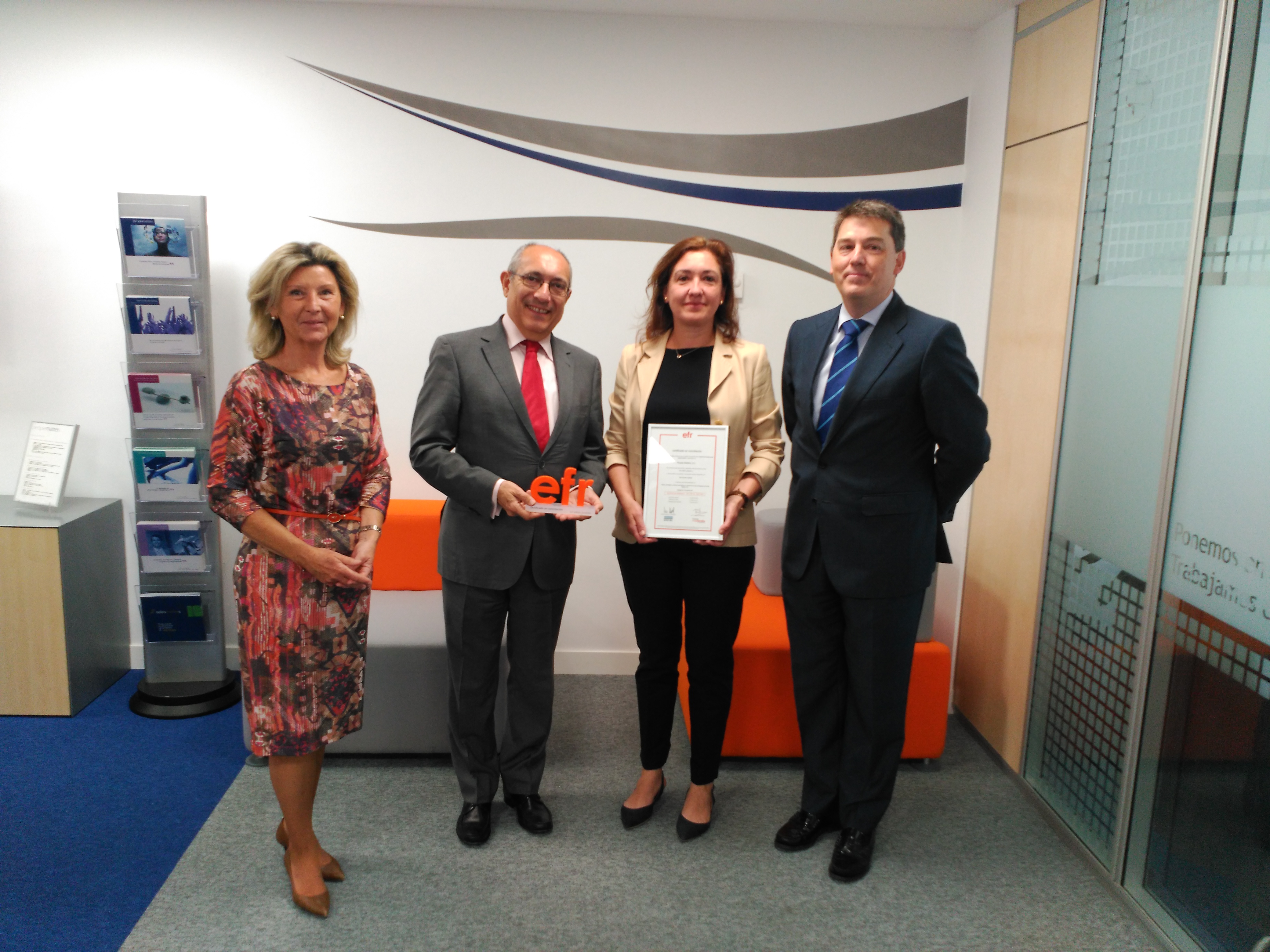 PeopleMatters ha recibido de la mano de Rafael Fuertes, Director General de Fundación Másfamilia el certificado de renovación del modelo de gestión efr en conciliación (Empresa Familiarmente Responsable).